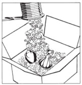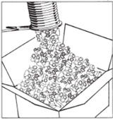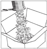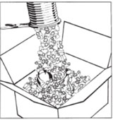 | Fill the base layer with this product | Add to product | Fill this product with | Overfill the product and seal the box |